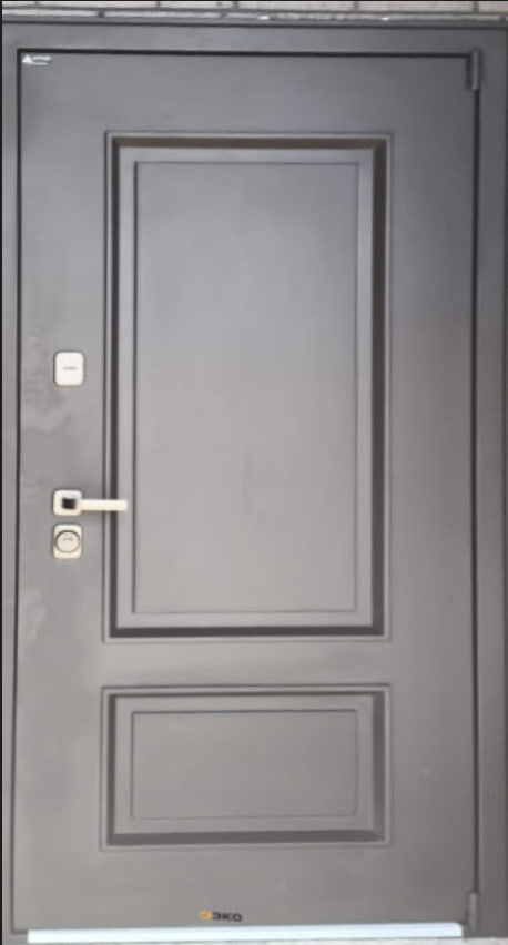 Размер 2060*980 и 2050*860, Цвет снаружи 7024 и 8019. Изнутри белая. Металл 1.5мм, Фурнитура овалы Хром. Замки с терморазрывом. Накладка на порог из нержавеющей стали.